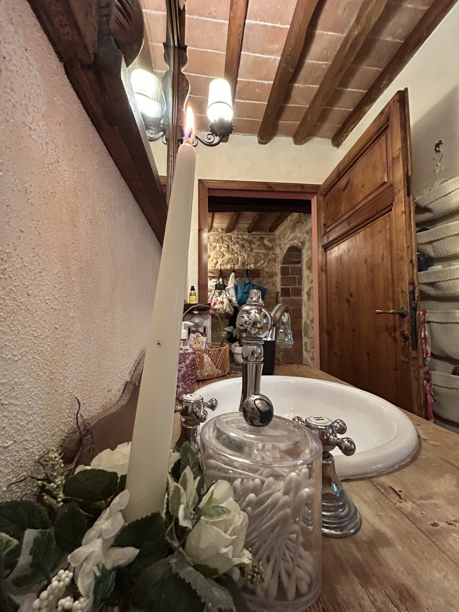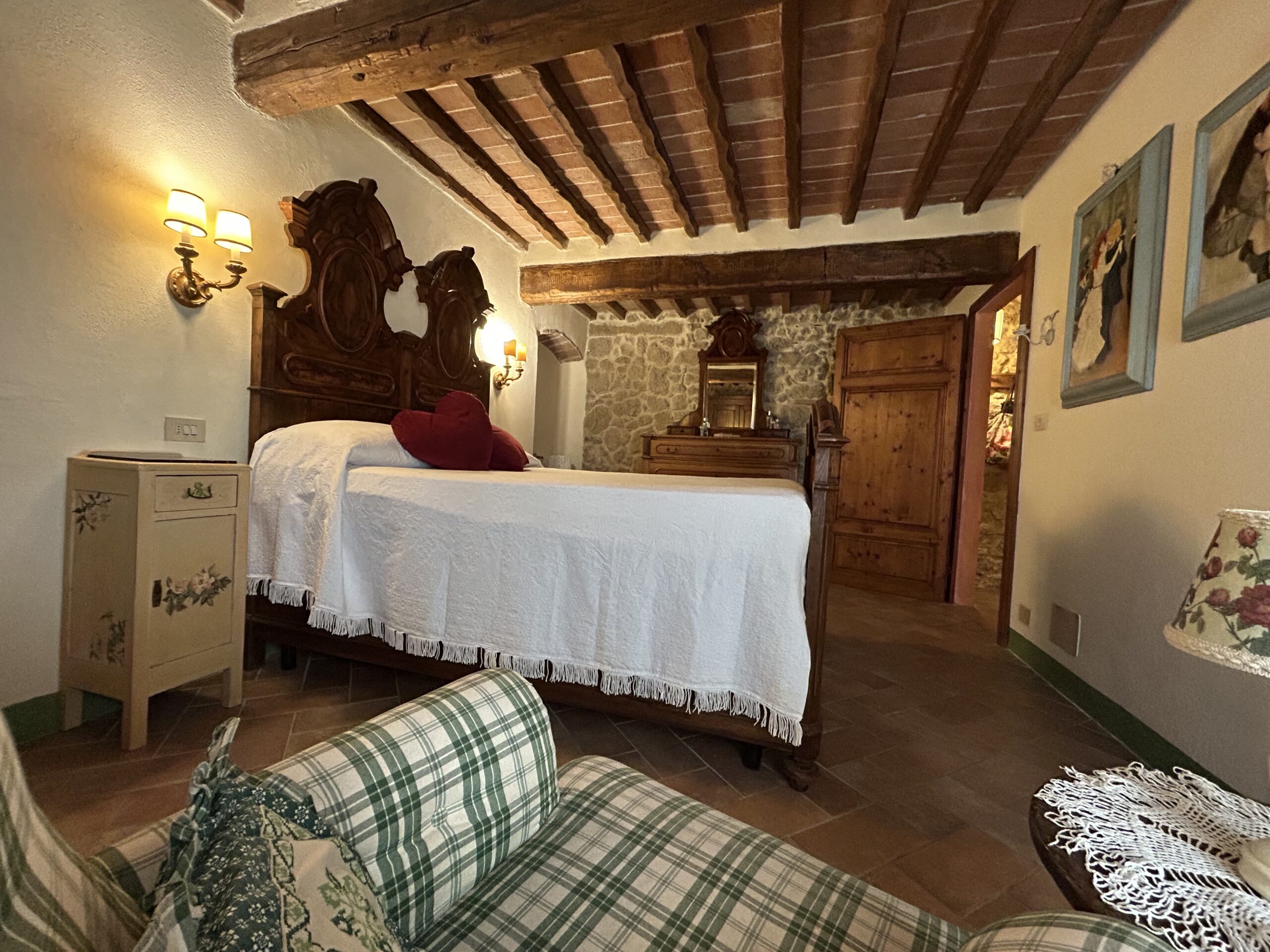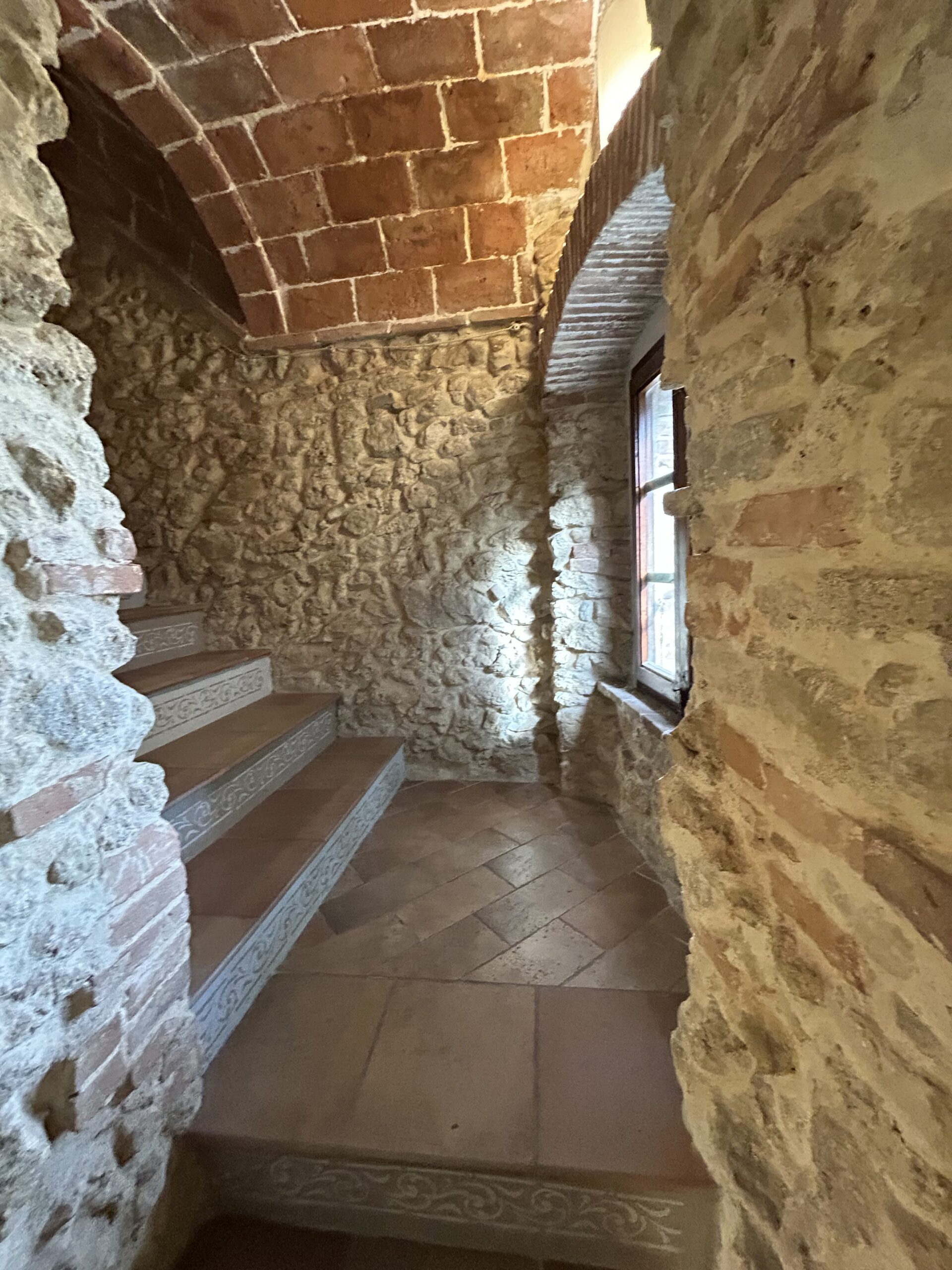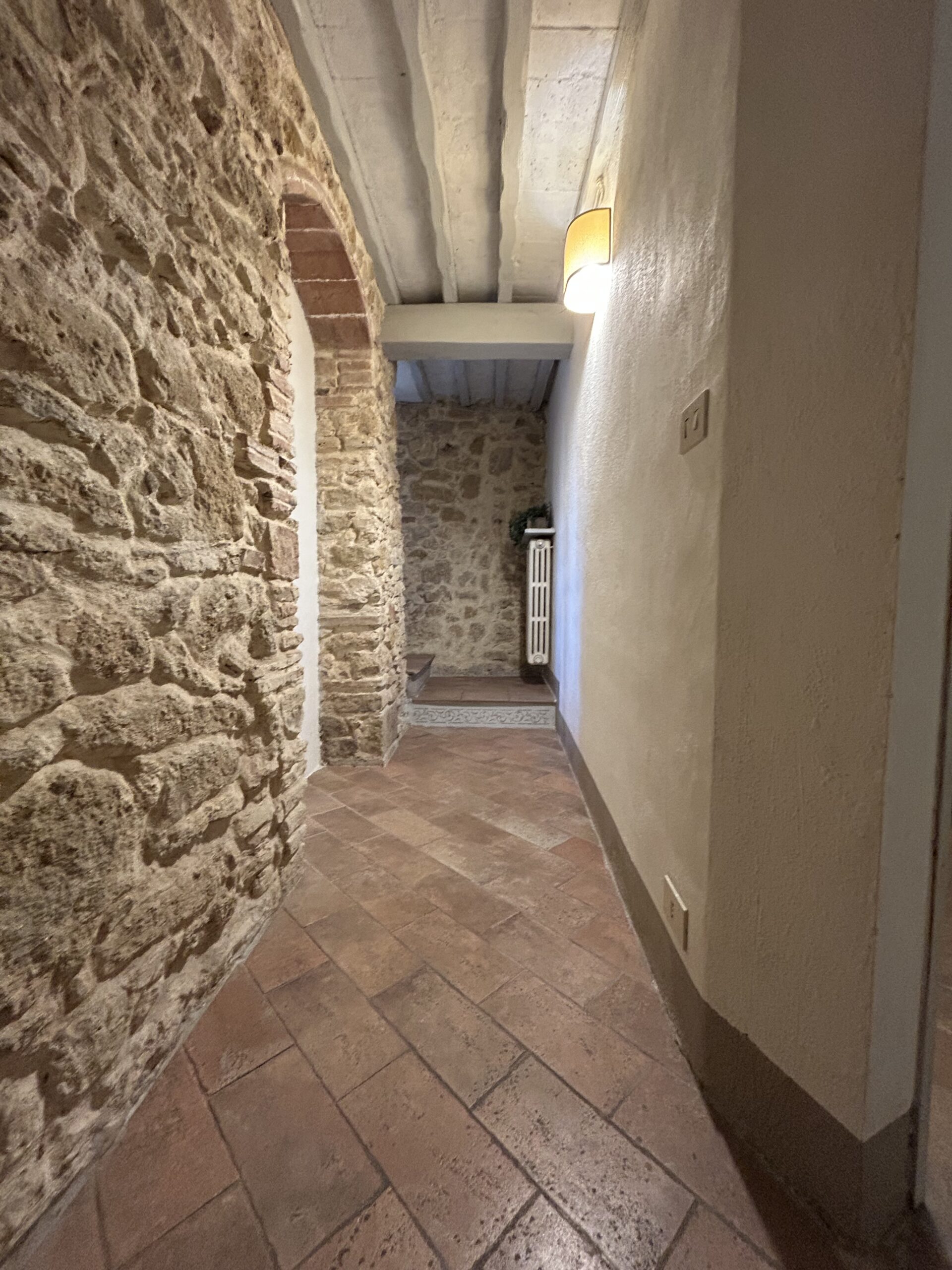 La ristrutturazione è stata curata nei minimi dettagli: porte originali dell’epoca, soffitti a travi e mezzane, volte e pareti in pietra sabbiati anch’essi originali, impianti elettrico e idraulico interamente rifatti. Il portoncino di ingresso è antico ed è stato appena restaurato, così come gli infissi, realizzati in  legno di castagno recuperato da vecchi tini. Al piano terra, nella zona giorno, all’interno di una parete, è presente una canna fumaria al momento non in uso, e nel vano lavanderia è stata installata una autoclave per ottimizzare la pressione dell’acqua ai piani.