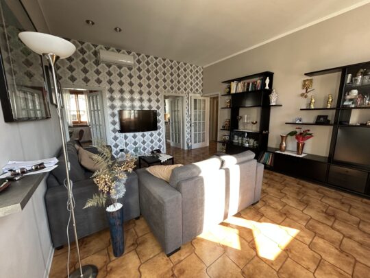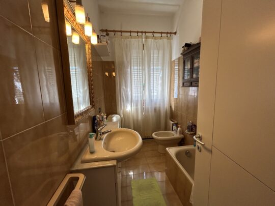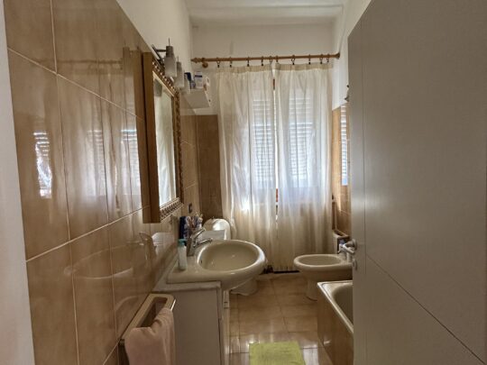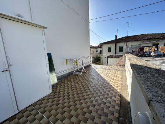 Empoli, appartamento in zona centrale, al primo piano di una casa libera su quattro lati e costituita da sole tre unità abitative. L’immobile si sviluppa al primo piano, su un unico livello, e si compone di un bel soggiorno molto luminoso, cucina separata abitabile con attigua sala da pranzo e accesso al grande terrazzo vivibile di mq. 32. Disimpegno zona notte, due camere matrimoniali di cui una molto grande e un bagno finestrato con vasca. La casa è molto luminosa, si presenta ottimamente, è tenuta molto bene e ha subito interventi di ammodernamento e manutezione nel corso degli anni. E’ dotata di impianto di aria condizionata, doppi vetri, e caldaia nuova. Al piano terra, completa la proprietà un comodo giardino e nel piazzale a comune ha due posti auto assegnati.