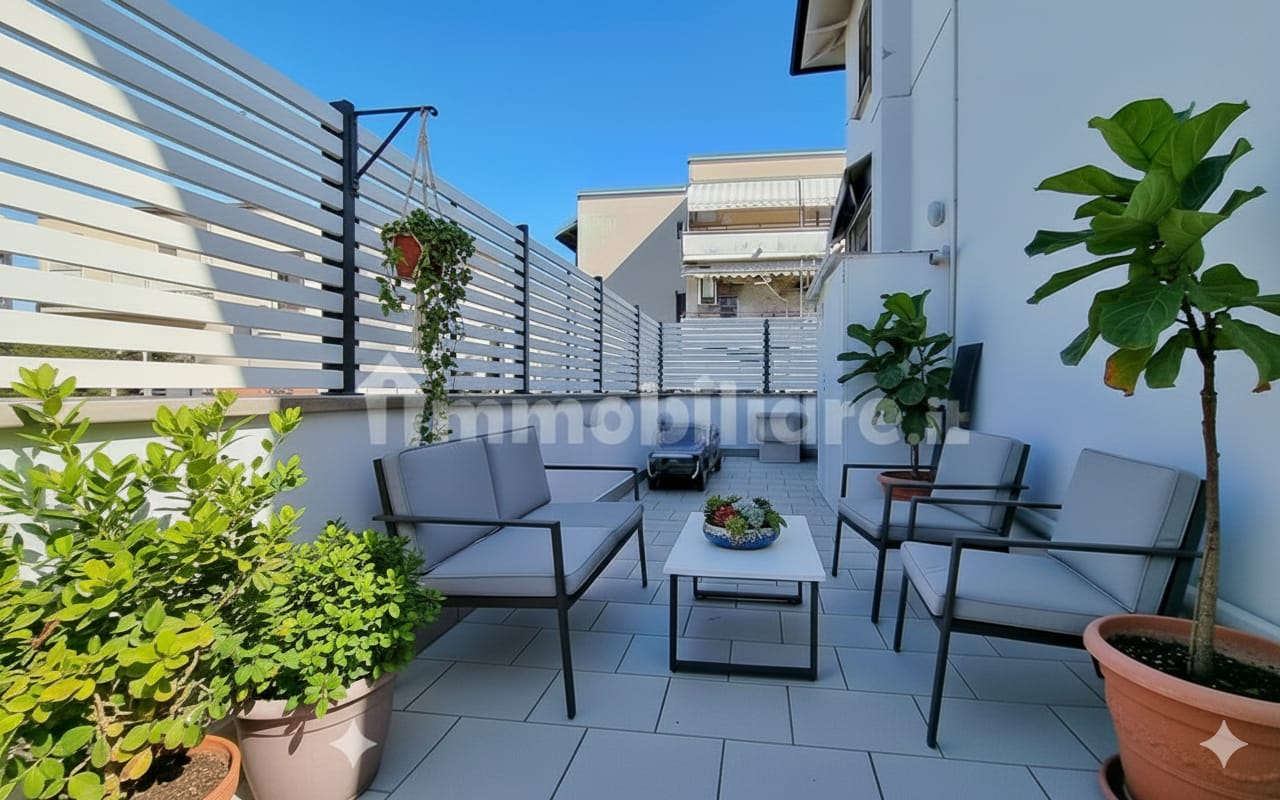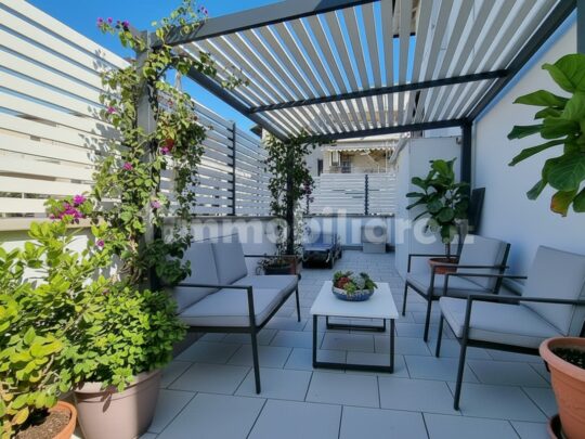 Empoli, appartamento in zona centrale, al primo piano di una casa libera su quattro lati e costituita da sole tre unità abitative. L’immobile si sviluppa al primo piano, su un unico livello, e si compone di un bel soggiorno molto luminoso, cucina separata abitabile con attigua sala da pranzo e accesso al grande terrazzo vivibile di mq. 32. Disimpegno zona notte, due camere matrimoniali di cui una molto grande e un bagno finestrato con vasca. La casa è molto luminosa, si presenta ottimamente, è tenuta molto bene e ha subito interventi di ammodernamento e manutezione nel corso degli anni. E’ dotata di impianto di aria condizionata, doppi vetri, e caldaia nuova. Al piano terra, completa la proprietà un comodo giardino e nel piazzale a comune ha due posti auto assegnati.