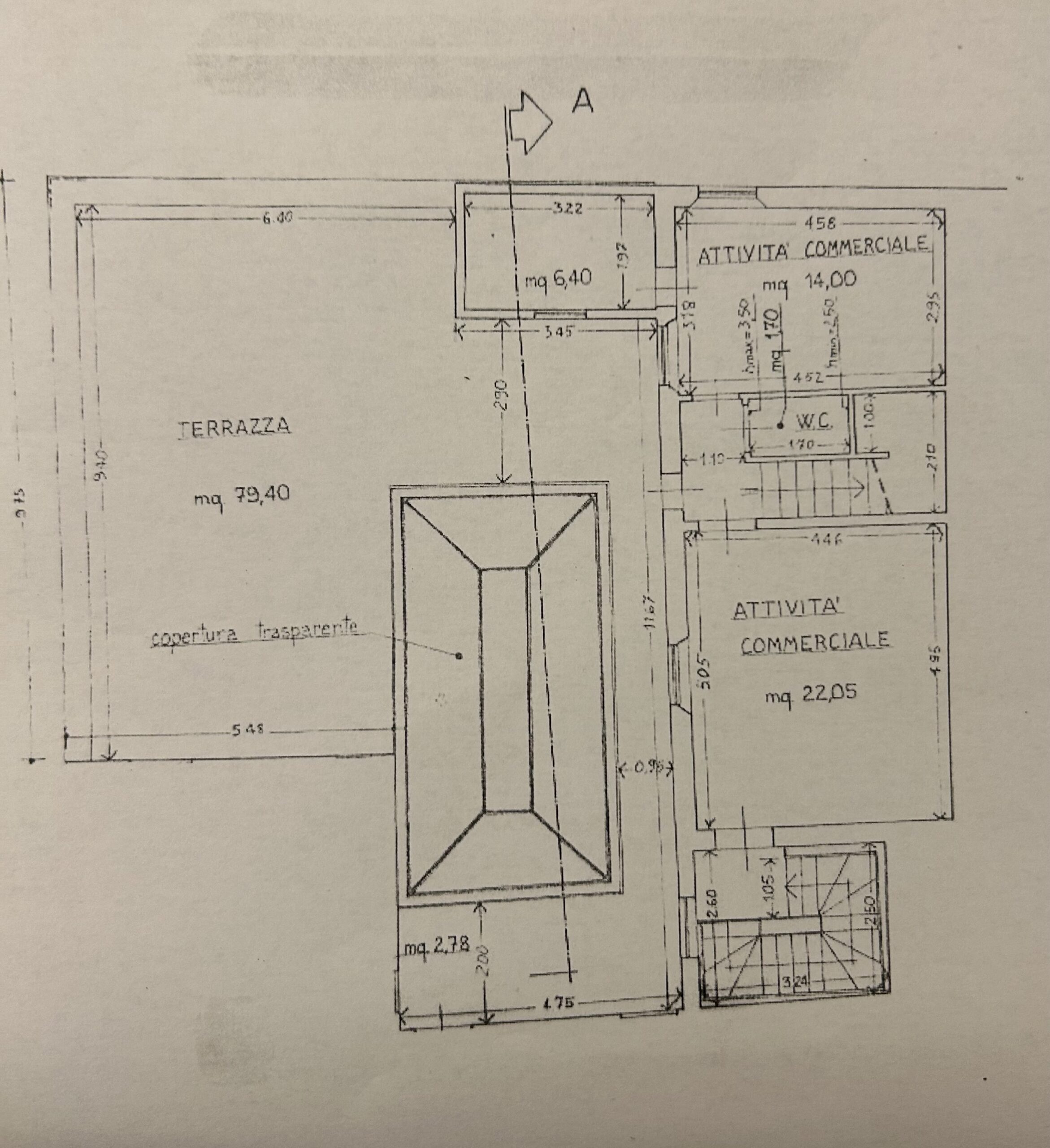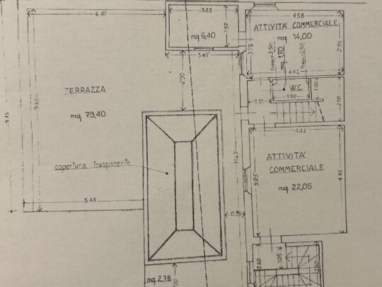 Empoli, centro storico, in una delle vie più belle e più frequentate della città, fondo commerciale di circa mq. 240 così strutturato: al piano strada, con doppia vetrina sulla via principale, unico grande locale di mq. 105 che prosegue in una ulteriore zona con altra vetrina sulla via parallela. Al piano primo si trovano altri mq. 50, un bagno e accesso al grande terrazzo di mq. 80, ideale per eventi e presentazioni. Il secondo ed ultimo piano, è costituito da ulteriori  mq. 42 con un secondo bagno.